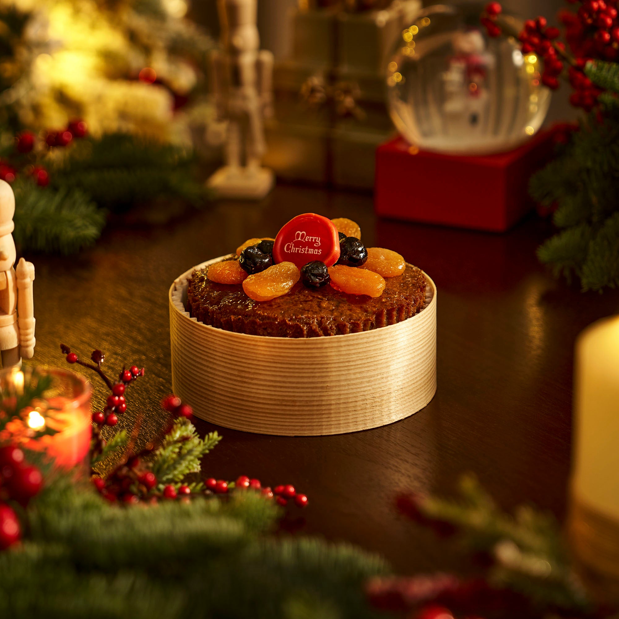 A moist fruit cake infused with festive spirits.