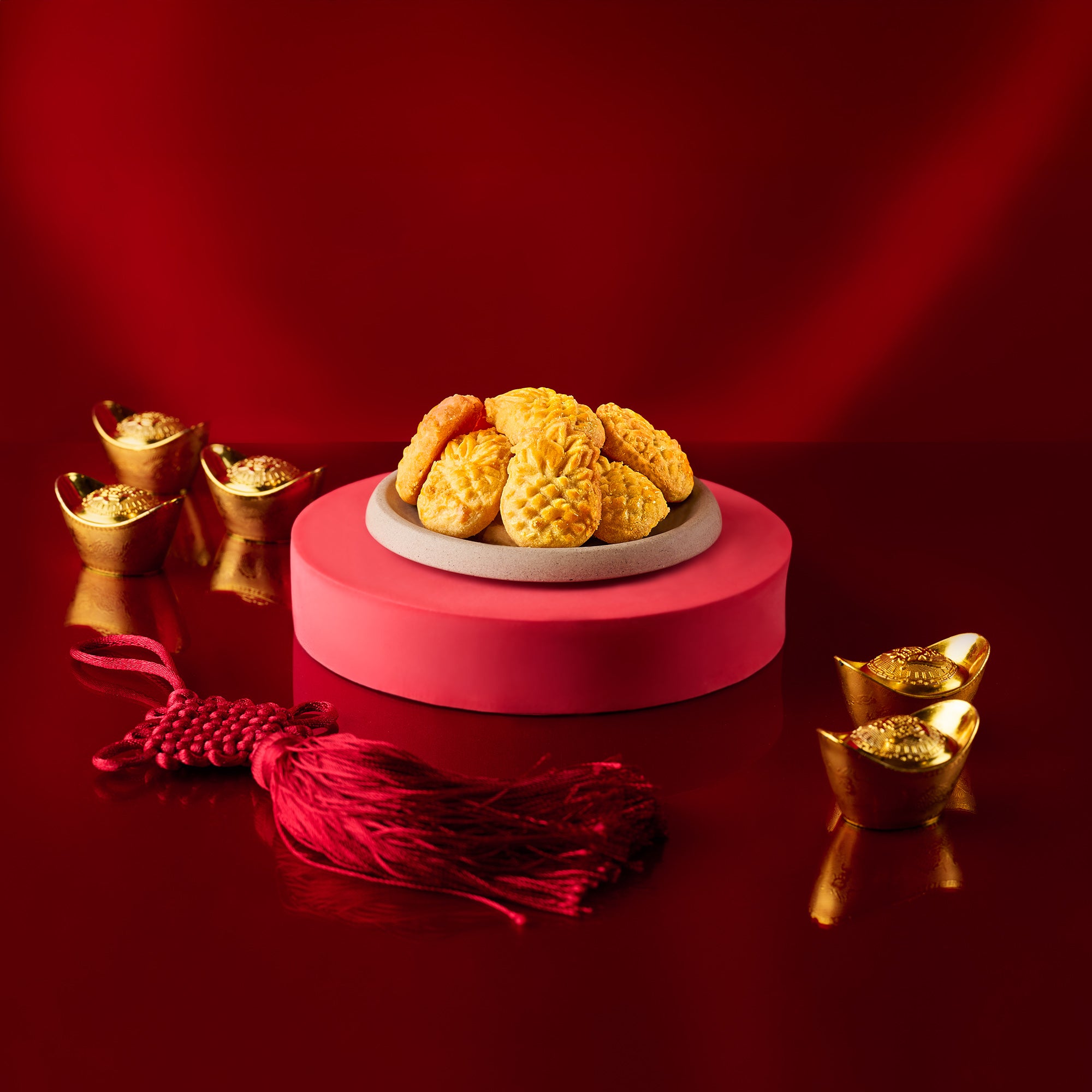 A Lunar New Year essential, these buttery pineapple tarts are filled with pineapple jam, carefully baked for a balanced sweetness and crumbly finish. A timeless festive favourite, perfect for gifting or sharing.